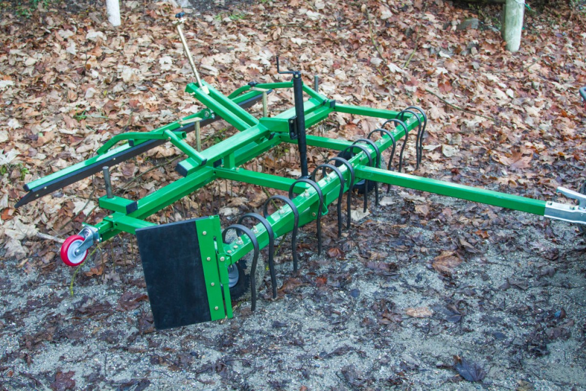Sa structure est en acier, cette herse pour centre équestre est construite avec son timon avec tète d’attelage standard européen.