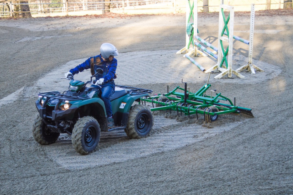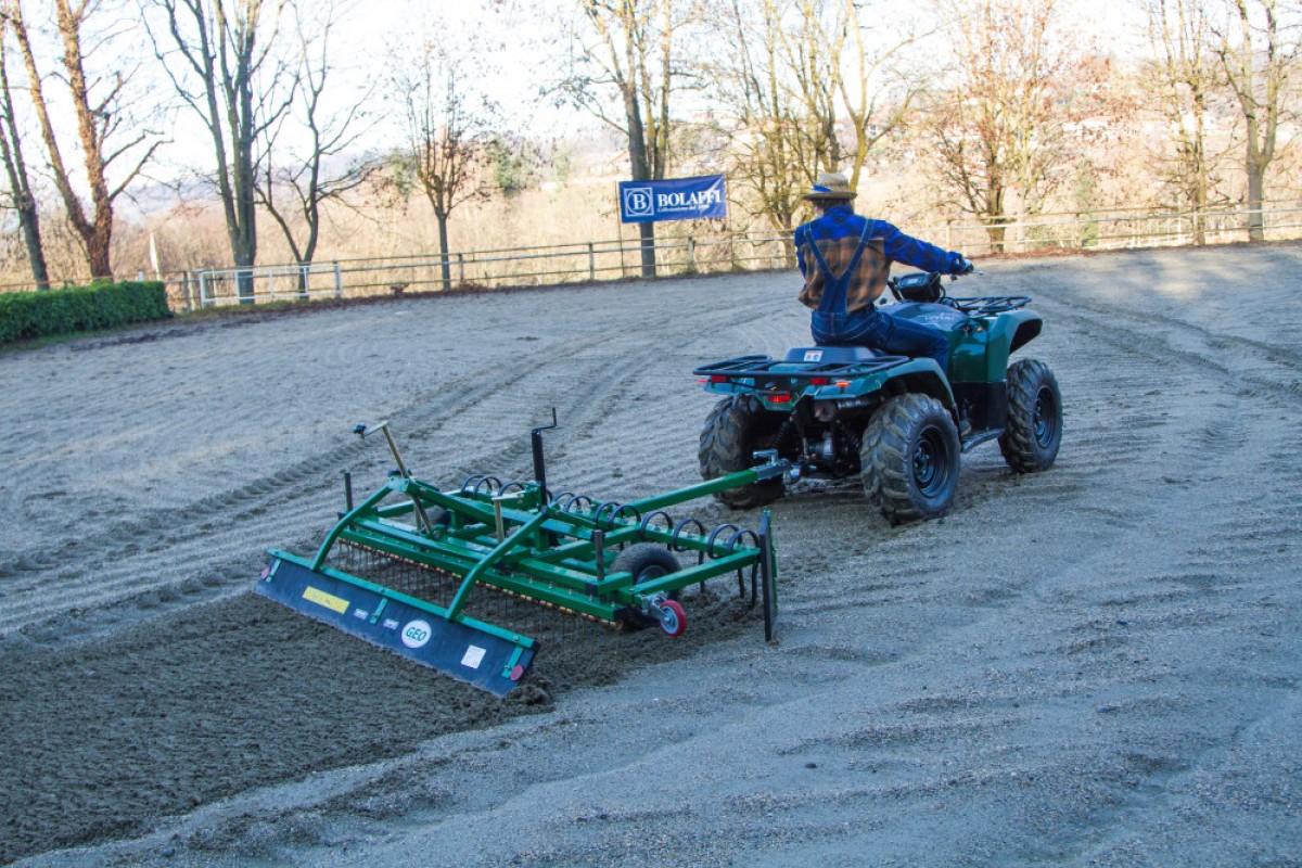 Herse de carrière niveleuse pour Quad est l’outil indispensable des manèges équestres, permet le décompacter et de lisser le sable après vos séances d’équitation.