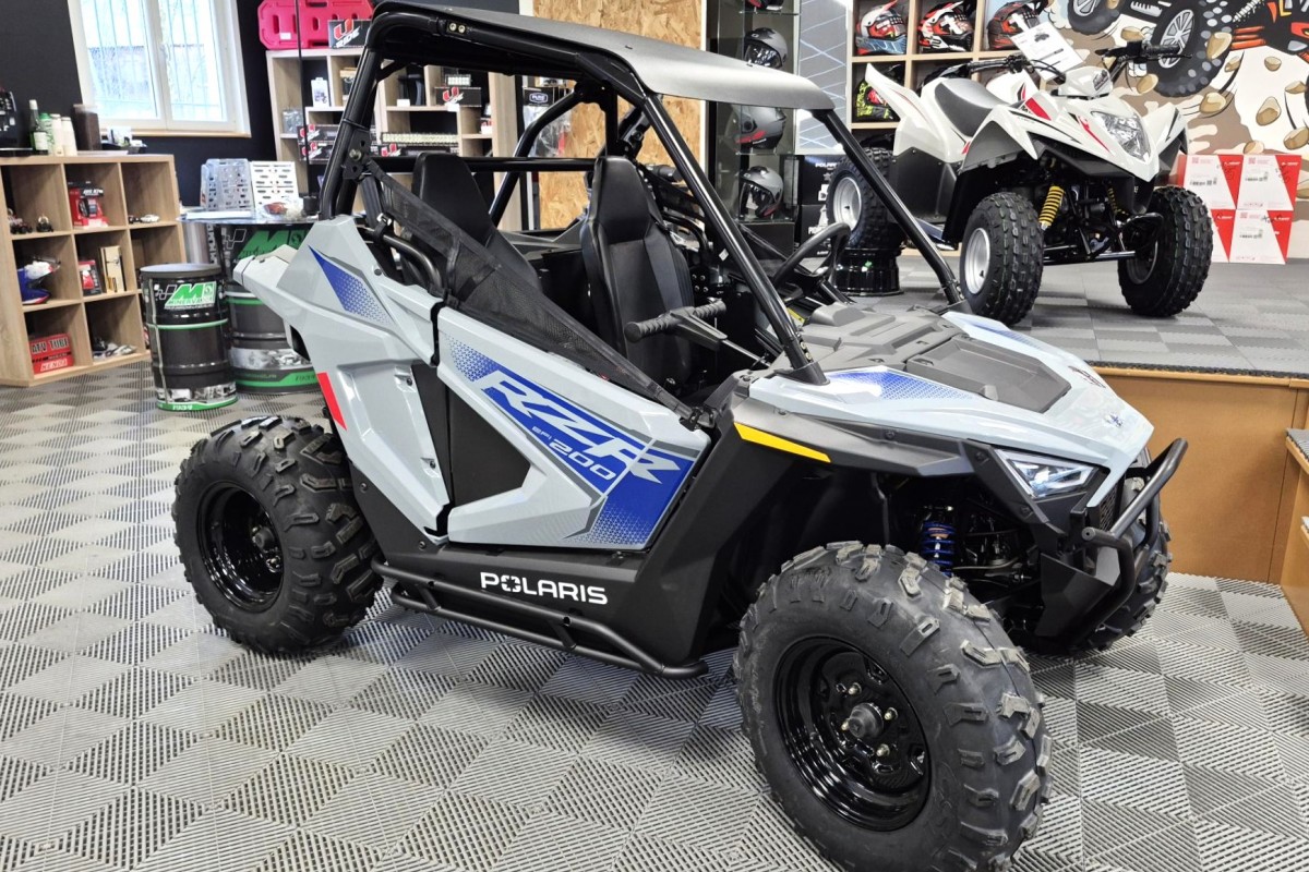 Véritable véhicule deux places du marché pour les enfants, le SSV (Buggy) Polaris RZR 200 EFI est conçu pour apporter aux enfants de 10 ans et plus le plaisir de la conduite tout terrain en fournissant un équipement de sécurité que les parents vont adorer.
